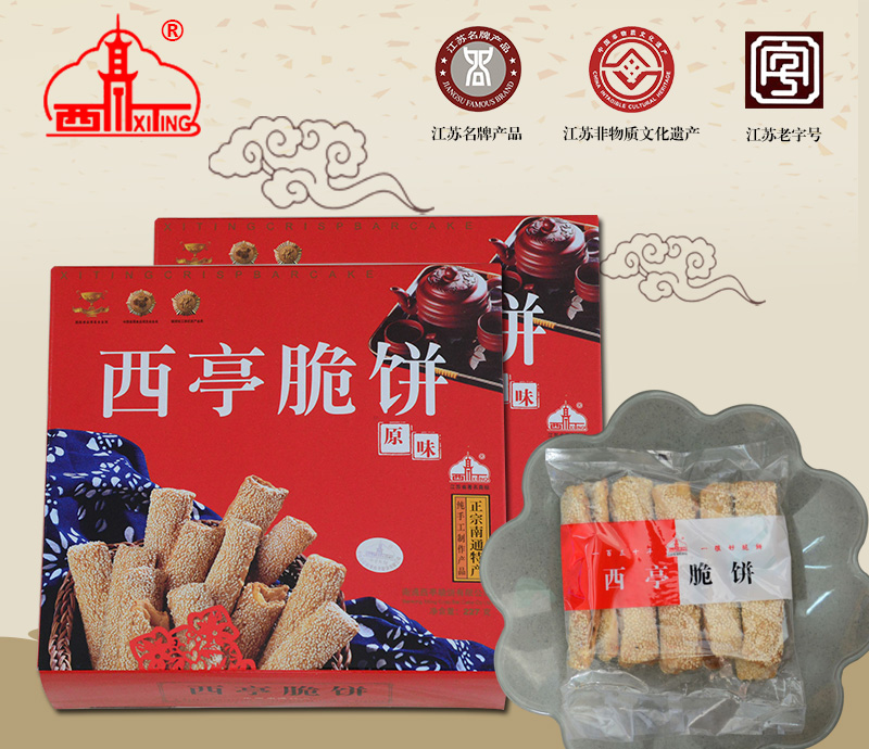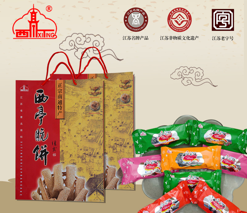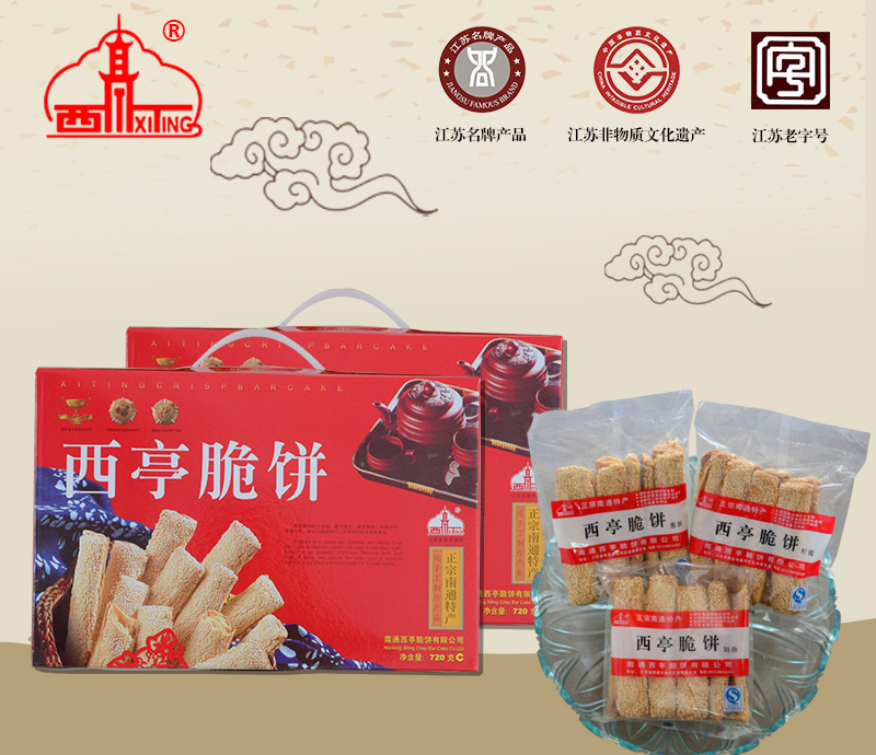 曾任北洋政府農(nóng)林工商總長的清末狀元張謇先生回故鄉(xiāng)省親祭祖時(shí),品嘗了“復(fù)興店”的西亭脆餅,不禁大加贊賞,并為該店親筆題寫了“復(fù)隆茂”字號,寓意:生意興隆,財(cái)源茂盛。張謇先生回京時(shí),把西亭脆餅作為家鄉(xiāng)土特產(chǎn),饋贈京都的達(dá)官貴人,駐華使節(jié)及中外客商,使西亭脆餅名聲大振,成為南通地區(qū)的地方名產(chǎn)。在日本、新加坡、菲律賓等東南亞地區(qū)也有一定的影響。